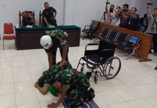 Saat majelis hakim membacakan putusan yang membebaskan keduanya dari tuntutan pidana mati oditur, kedua oknum TNI itu langsung sujud syukur di depan majelis hakim. Sertu Yalpin terlihat langsung turun dari kursi rodanya dan diikuti oleh Pratu Rian Hermawan yang juga ikut bersujud. Mereka terlihat bersyukur karena lepas dari hukuman mati yang dituntut oleh oditur militer