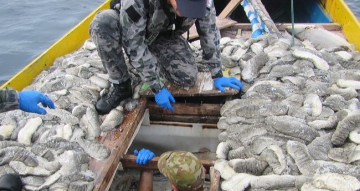 Pada tahun 2021, Operasi Jawline melihat kapal patroli Pasukan Perbatasan mencegat 19 kapal penangkap ikan Indonesia yang membawa sekitar 860 kilogram teripang dalam periode dua minggu. (psc)