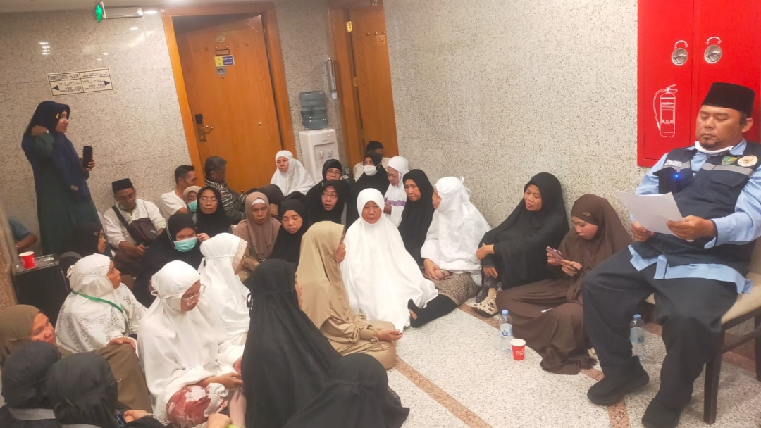 Ketua Kloter 09 KNO M.Lukman Hakim Hasibuan melakukan persiapan persiapan pra keberangkatan dengan mengumpulkan para jemaah di lantai 10 Hotel Shofwat Al Madinah untuk diberikan materi seputar teknis pemberangkatan persiapan Haji dan Umrah bersama personil Tim Pembimbing Ibadah dan Tenaga Kesehatan yang ada di kloternya.
