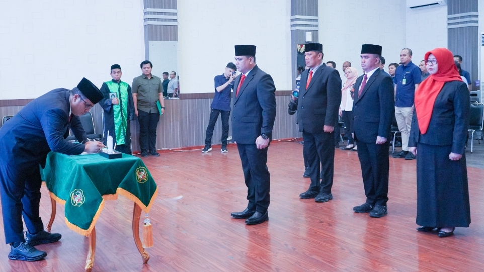 PORTALSWARA.COM — Atas nama Wali Kota Medan Bobby Nasution, Pj Sekda Kota Medan Topan Obaja Putra Ginting melantik dan mengambil sumpah 4 Pejabat Tinggi Pratama Pemko Medan di Balai Kota Medan, Selasa (24/09/2024).