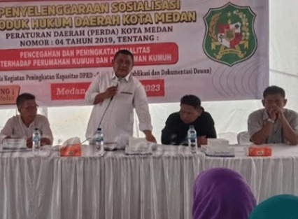 Hal itu ditegaskan Wakil Ketua Komisi II DPRD Medan, Surianto, saat menggelar sosialisasi produk hukum, Perda Kota Medan Nomor 4 tahun 2019 tentang Pencegahan dan Peningkatan Kualitas Terhadap Perumahan dan Pemukiman Kumuh, di Jalan Jagung Lingkungan 8, Kelurahan Terjun Kecamatan Medan Marelan, Sabtu (03/06/2024) dan Minggu (04/06/2023).