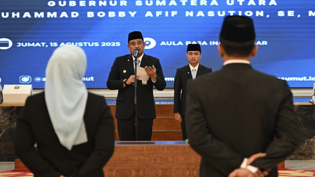 PORTALSWARA.COM – Gubernur Sumatera Utara (Sumut) Muhammad Bobby Afif Nasution melantik lima Pejabat Pimpinan Tinggi Pratama (eselon II) di jajaran Pemerintah Provinsi (Pemprov) Sumut. Kepada para pejabat yang baru dilantik, Bobby meminta agar memaksimalkan pelaksanaan program pembangunan dan memastikan penggunaan anggaran tepat guna.