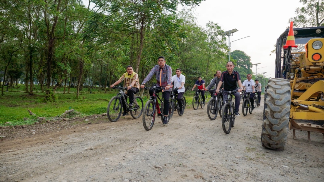 Sebelum meninjau dengan mengendarai sepeda, Bobby Nasution dengan berjalan kaki mencoba trek (lintasan) untuk pejalan kaki yang berada di tengah rerimbunan pohon besar. Setelah itu, suami Ketua TP PKK Kota Medan Kahiyang Ayu meninjau sejumlah fasilitas yang telah dibangun, di antaranya amfiteater, lapangan panahan, dan lapangan terbuka (outdoor) berkuda.