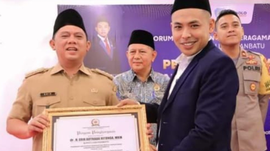 Maka itu semua yang sudah mendapatkan penganugerahan Duta Kerukunan oleh FKUB, merupakan menjadi suatu tugas untuk menyampaikan kerukunan diantara sekolah kita, ucap Bupati Erik Adtrada Ritonga.