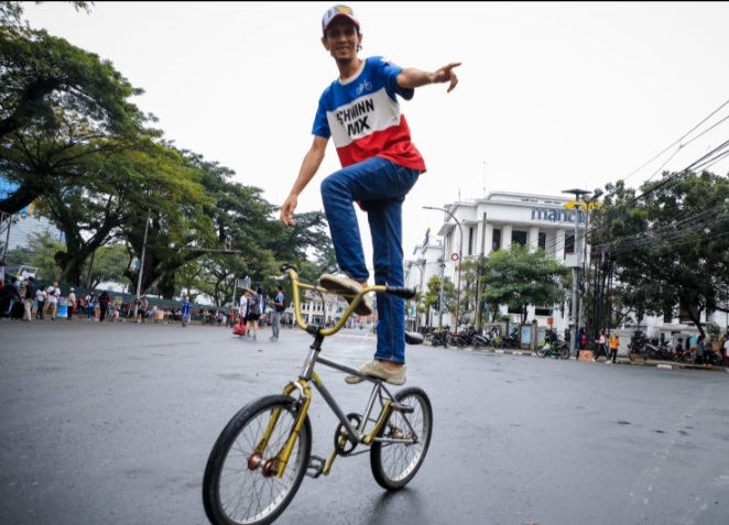 PORTALSWARA.COM — Car Free Day (CFD) Medan ajang komunitas sepeda BMX untuk unjuk kebolehannya beraksi. Hujan gerimis Minggu (22/01/2023) pagi itu, bukan penghalang bagi masyarakat Medan untuk mengikuti gelaran rutin Pemko Medan di seputaran Lapangan Merdeka tersebut.