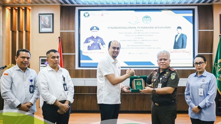 Penandatanganan MoU tersebut dilaksanakan di Aula lantai III Kantor Kejaksaan Tinggi Sumatera Utara Jalan AH Nasution No 1C Medan, merupakan langkah strategis dalam memperkuat sinergi antara Perumda Tirtanadi dengan Kejaksaan Tinggi Sumatera Utara, khususnya dalam penyelesaian permasalahan hukum yang berkaitan dengan perdata dan tata usaha negara, Selasa (21/04/2026).