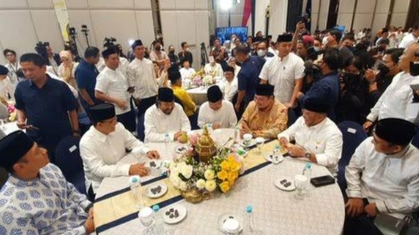 Elite politik yang hadir dalam acara tersebut adalah Airlangga, tokoh senior Golkar Jusuf Kalla, Ketua Umum NasDem Surya Paloh, Ketum Demokrat Agus Harimurti Yudhoyono (AHY) dan bakal capres Anies Baswedan.