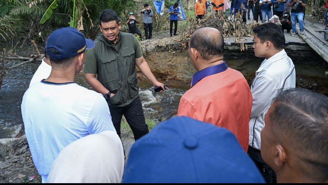 Dari Jatisari, Bobby melanjutkan peninjauan ke ruas jalan menuju Tanjungberingin yang putus akibat terjangan banjir beberapa waktu lalu. Jalan ini merupakan akses alternatif warga dari Tanjungpura dan Padangtualang menuju Stabat. Kondisi jalan yang runtuh diamati langsung untuk percepatan penanganan.
