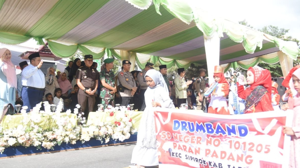 Antusiasme masyarakat terlihat jelas saat menyaksikan Pawai Taaruf, dengan seluruh Ruko di Jalan Merdeka Pasar Sipirok penuh hingga lantai tiga. Forkopimda dan pimpinan OPD juga turut tersenyum bahagia menyambut kedatangan peserta Pawai Taaruf. (psc)
