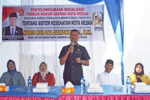 Penegasan itu dipaparkan Haris Kelana Damanik, saat menggelar sosialisasi produk hukum Peraturan Daerah Kota Medan Nomor 4/2012 tentang Sistem Kesehatan Kota Medan yang dilansungkan selama dua hari, Sabtu (03/06/2023) dan Minggu (04/06/2023), di Jalan Abdul Sani Muthalib, Kelurahan Terjun Kecamatan Medan Marelan.