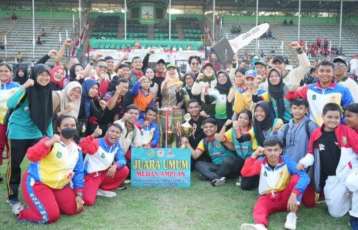 PORTALSWARA.COM — Kecamatan Medan Amplas dinobatkan sebagai juara umum Pekan Olahraga Kota (Porkot) Medan XIII tahun 2023, Sabtu (26/8), yang berlangsung selama sepekan.