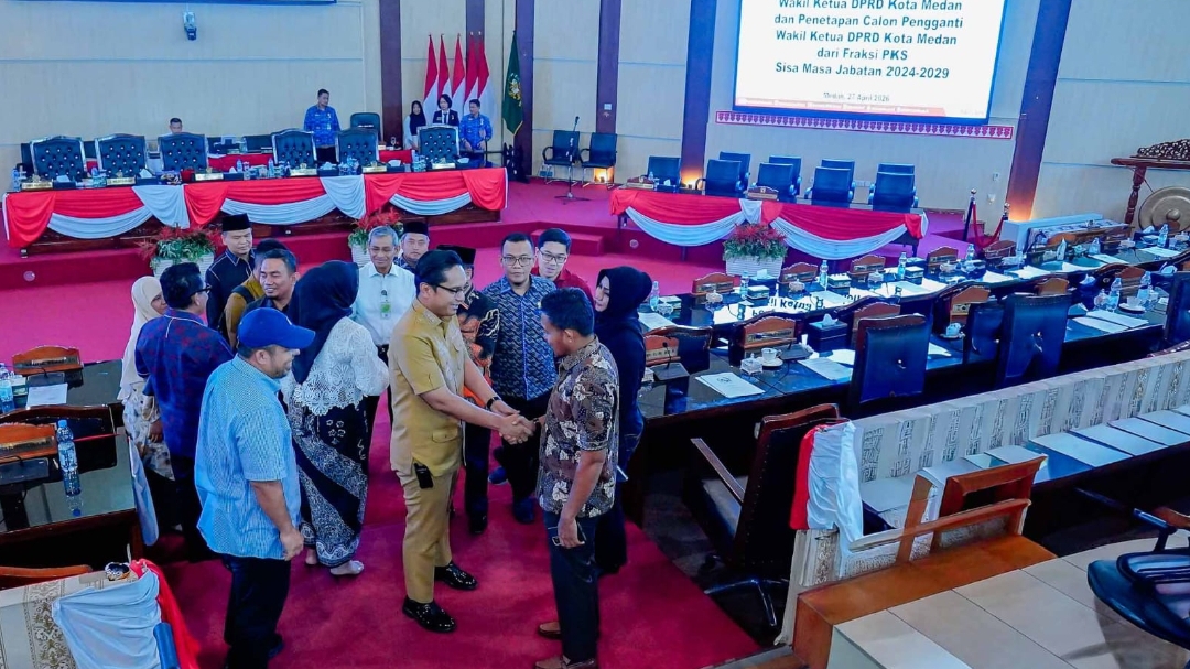 PORTALSWARA.COM — Dewan Perwakilan Rakyat Daerah (DPRD) Kota Medan menggelar rapat paripurna dengan agenda Penyampaian Hasil Pembahasan Panitia Khusus (Pansus) Laporan Keterangan Pertanggungjawaban (LKPJ) Tahun Anggaran 2025 serta penandatanganan keputusan DPRD Kota Medan untuk dijadikan rekomendasi kepada Pemerintah Kota Medan, Senin (27/04/2026).