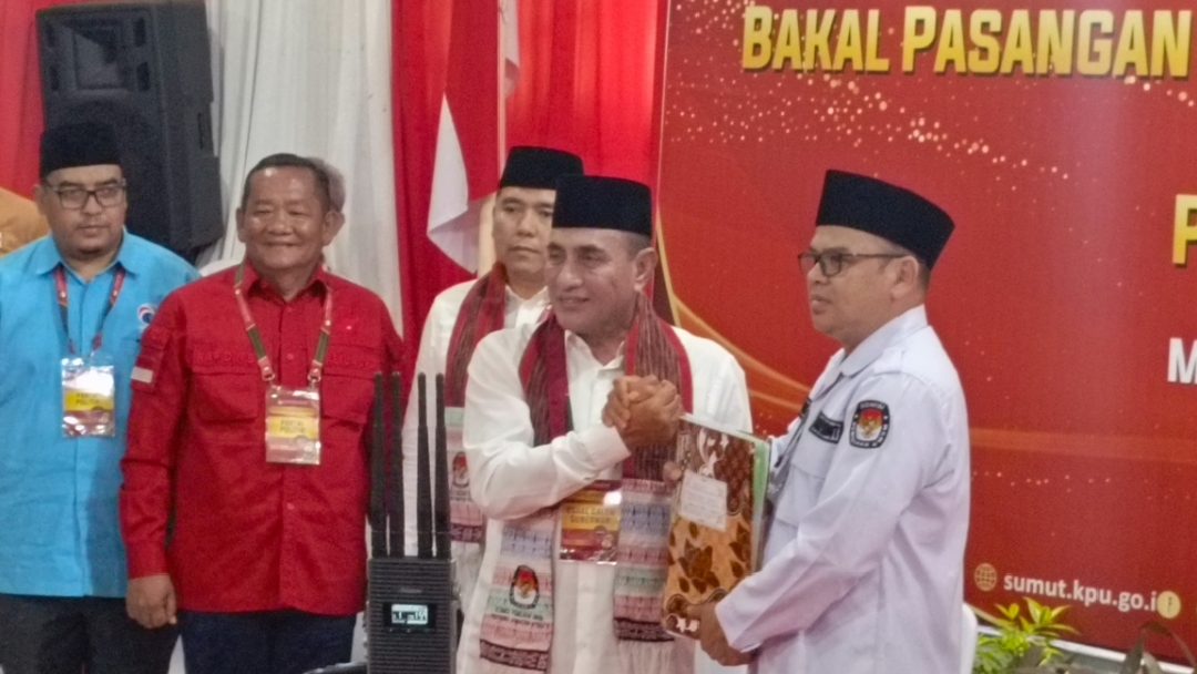 Pasangan Edy Rahmayadi-Hasan Basri Sagala, yang diusung PDI Perjuangan, Partai Hanura, Partai Ummat, Partai Buruh, Partai Gelora dan Partai Kebangkitan Nusantara (PKN) tersebut, mendaftar setelah sebelumnya mendeklarasikan diri di Hotel Grand Mercury, Jalan Perintis Kemerdekaan Medan.