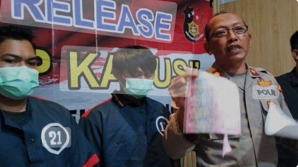 Aksi kriminal ini terungkap setelah polisi menerima laporan dari seorang pembeli yang menggunakan uang palsu untuk membayar sewa hotel di Surabaya.