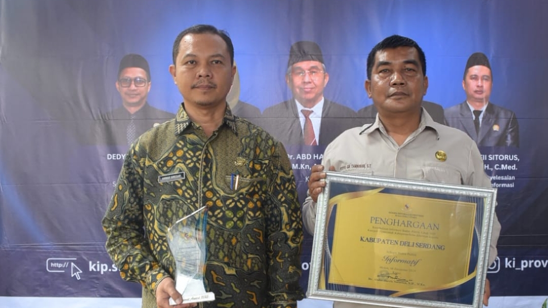 Penghargaan diserahkan Kepala Divisi Advokasi, Sosialisasi, dan Edukasi KI Sumatera Utara, Dedy Ardiansyah SSos dan diterima Bupati Deli Serdang, dr H Asri Ludin Tambunan diwakili Pelaksana Tugas (Plt) Kepala Dinas Komunikasi, Informatika, Statistik, dan Persandian (Kominfostan) Deli Serdang, Anwar Sadat Siregar SE MSi, pada Komisi Informasi Sumut Award Tahun 2025 di Kantor Komisi Informasi Provinsi Sumut, Jalan Alfalah, Medan, Kamis (18/12/2025).
