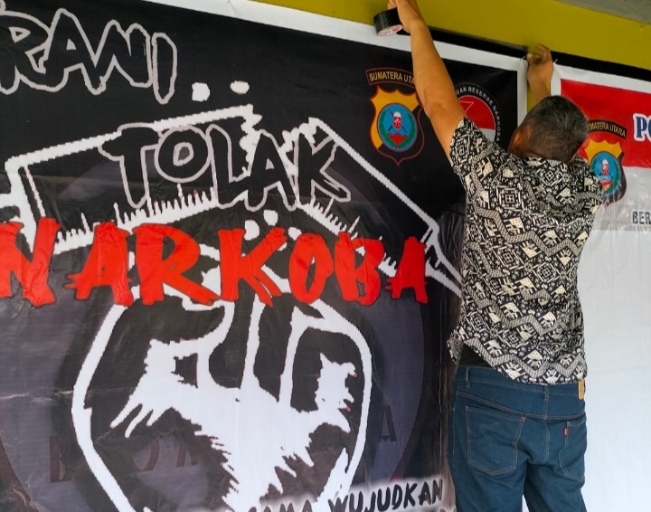 Kapolsek Bilah Hulu AKP Ramses Panjaitan menjelaskan spanduk-spanduk yang dipasang di KBN Desa Pondok Batu berisi imbauan-imbauan terkait menolak Narkoba. Hal itu bagian dari upaya Polsek Bilah Hulu benahi posko KBN.