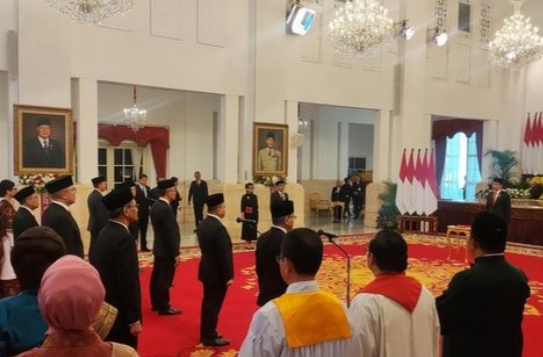 “Bahwa saya untuk diangkat menjadi Duta Besar luar biasa dan berkuasa penuh (LBBP) akan setia kepada UUD Negara Republik Indonesia Tahun 1945 serta akan menjalankan segala peraturan perundang-undangan dengan selurus-lurusnya demi Dharma Bakti saya kepada bangsa dan negara,” demikian petikan sumpah pelantikan yang dibacakan Jokowi dan diikuti oleh para dubes yang dilantik.