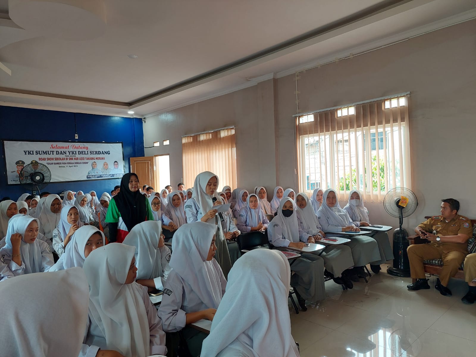 Acara Road Show Sekolah YKI Sumut di YP Nur Azizi Tanjung Morawa juga diselingi dengan sesi tanya jawab dari peserta, para siswa-siswi.