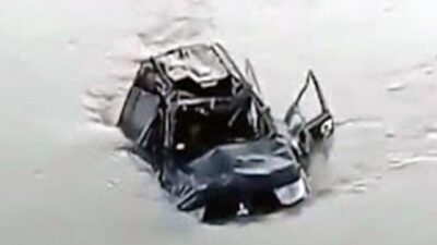 Satu unit mobil Mitsubishi Pajero Sport BK 1870 PD terjun ke Sungai Batang Serangan, Dusun Titin Kurus, Desa karya Jadi, Batang Serangan, Langkat, Sumatera Utara, Kamis (26/10/2023) dini hari