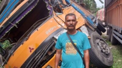Kecelakaan lalu lintas, 2 truk laga kambing di Jalan Km 06-07 Desa Huta Baru, Kecamatan Batang Toru, Kabupaten Tapanuli Selatan (Tapsel), Selasa (04/07/2023) malam.