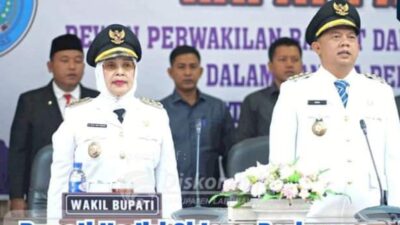 Bupati Labuhanbatu dr H Erik Adtrada Ritonga MKM bersama Wakil Bupati Labuhanbatu Hj Ellya Rosa Siregar SPd MM menghadiri Sidang Paripurna Peringatan HUT Pemkab Labuhanbatu ke-78 Tahun 2023