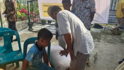 Amran Dalimunthe bersujud di kaki ayahnya setelah memenangi Pilkades Partihaman Saroha, Jumat (25/08/2023).