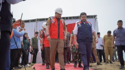 Walikota Medan Bobby Nasution menyaksikan peketakan batu pertama pembangunan Islamic Center, Senin (22/05/2023). Pembangunan Islamic Center Kota Medan
