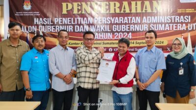 Komisi Pemilihan Umum Sumatera Utara (KPU Sumut) menyerahkan hasil penelitian persyaratan administrasi dua pasangan bakal calon Gubernur