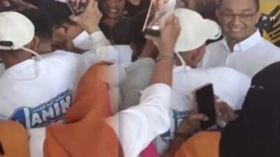Potongan video di media sosial memperlihatkan calon presiden nomor urut 1 Anies Baswedan ditampar pria berkaos AMIN ketika kampanye di Kalbar