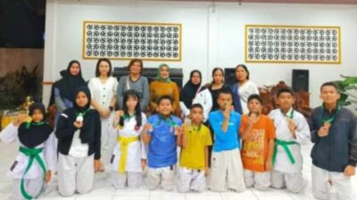 Pelaksana tugas Bupati Labuhanbatu Hj Ellya Rosa Siregar SPd MM sambut kedatangan atlet peraih medali pada kejuaraan daerah karate antar dojo Inkado Sumatera Utara