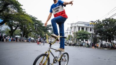 Car Free Day (CFD) Medan ajang komunitas sepeda BMX untuk unjuk kebolehannya beraksi. Hujan gerimis Minggu (22/01/2023) pagi itu, bukan penghalang bagi masyarakat Medan