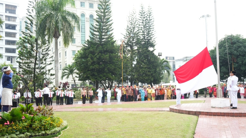 Turut hadir dalam upacara tersebut, Sekda Kota Medan, Wiriya Alrahman, pimpinan perangkat daerah di lingkungan Pemko Medan, Kepala Kemenang Medan, para camat serta ASN Pemko Medan.