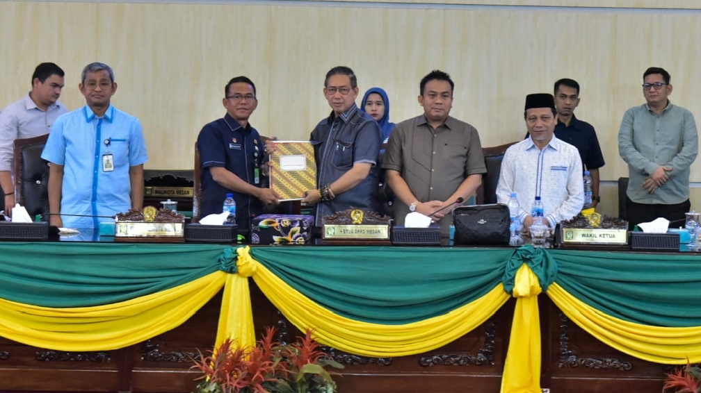 PORTALSWARA.COM — Wakil Wali Kota Medan H. Zakiyuddin Harahap mengikuti Sidang Paripurna DPRD Pemandangan Umum Fraksi-fraksi atas Penjelasan Kepala Daerah terhadap Ranperda Kota Medan tentang Pencegahan dan Penanggulangan Kebakaran, Selasa (08/07/2025) di gedung dewan.