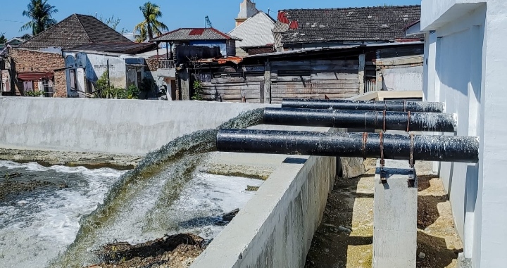 “Semua air pasang yang mengalir ke dalam drainase warga di jalan tersebut akan dialirkan ke dalam colector drain atau ke kolam penampungan. kemudian air akan dipompa dan dibuang ke laut,” jelas camat sembari mengungkapkan manfaat dari rumah pompa air ini sudah dirasakan oleh masyarakat.