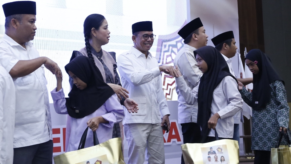 PORTALSWARA.COM — Wakil Wali Kota Medan H Zakiyuddin Harahap menyerahkan santunan kepada anak yatim-piatu dalam rangkaian kegiatan buka puasa bersama yang digelar DPD Partai Gerindra Sumatera Utara yang digelar di Hotel Santika Dyandra, Sabtu (07/03/2026).